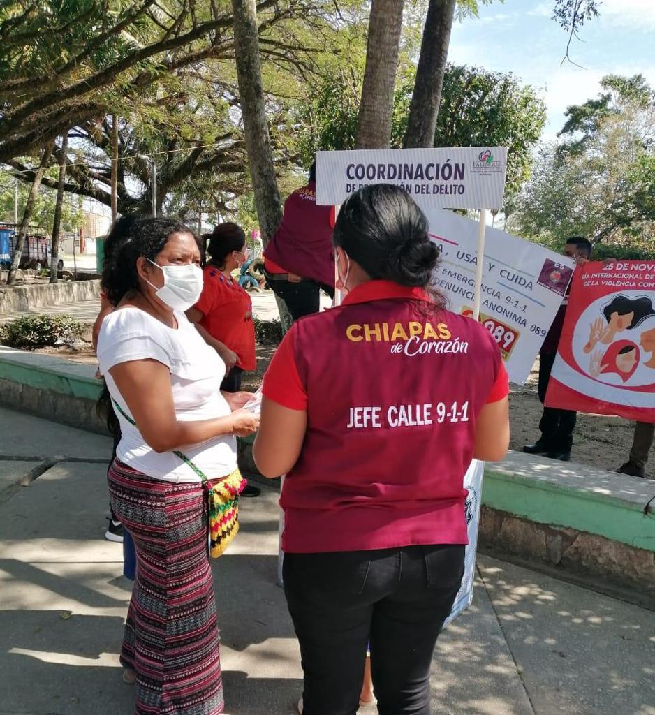 Tuxtla Gutiérrez, Chiapas.- La Secretaría de Seguridad y Protección Ciudadana (SSyPC), a través del Escudo Urbano C5 Palenque, realizó actividades alusivas al Día Naranja para la no violencia contra las mujeres y niñas.