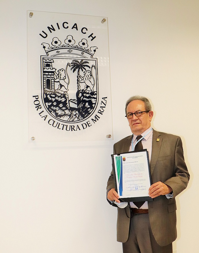 El rector es licenciado en Derecho por la UNAM, egresado de la licenciatura en Historia de la UNICACH y Maestro en Administración Pública.