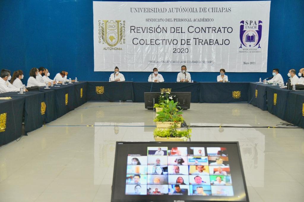 Tuxtla Gutiérrez, Chiapas; mayo 17 de 2021. - La UNACH está llamada a ser uno de los referentes en la región Sur-Sureste del país y como tal debemos asumir ese reto en todos los niveles, afirmó el rector Carlos F. Natarén Nandayapa, durante el inicio de la Revisión del Contrato Colectivo de Trabajo del Sindicato de Personal Académico (SPAUNACH).
