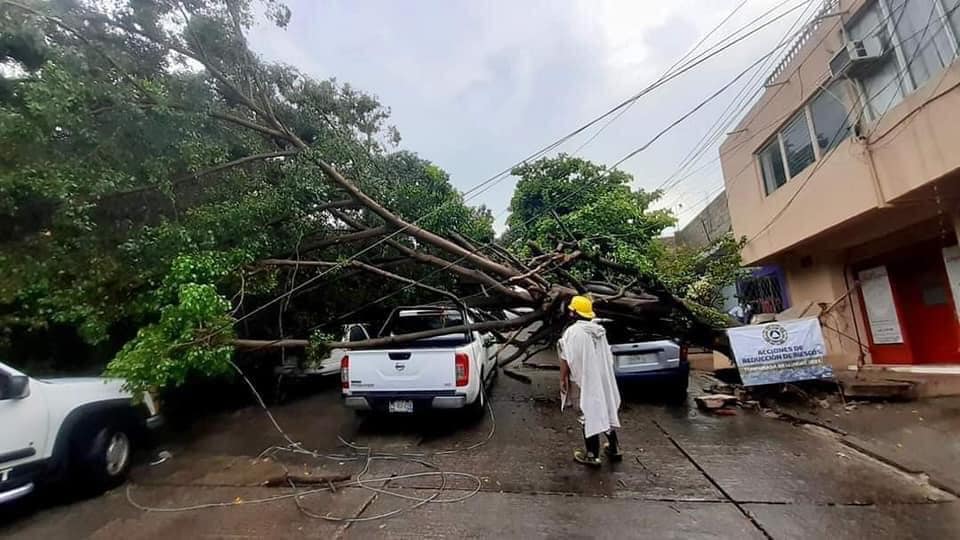Tuxtla Gutiérrez, Chiapas. 24 de mayo de 2021.- Al menos una palmera y 5 árboles caídos fue el saldo de la intensa lluvia que cayó sobre la zona norte oriente y centro de la capital chiapaneca, informó la Secretaría de Protección Civil municipal de Tuxtla Gutiérrez.