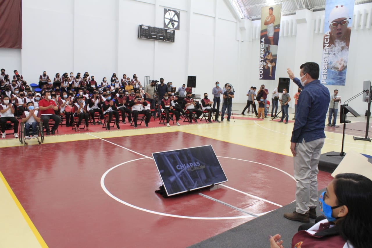 Luego de resaltar la letra inspiradora de Toto Ramos en el Himno al Deporte, que surgió en este instituto, y entregar el estandarte a las y los deportistas, Escandón Cadenas dijo que Chiapas cuenta con gran fortaleza en sus recursos naturales y en su cultura descendiente de la civilización Maya, sin embargo, aseguró, el tesoro más grande son sus recursos humanos, principalmente, sus jóvenes, base fundamental para el progreso.