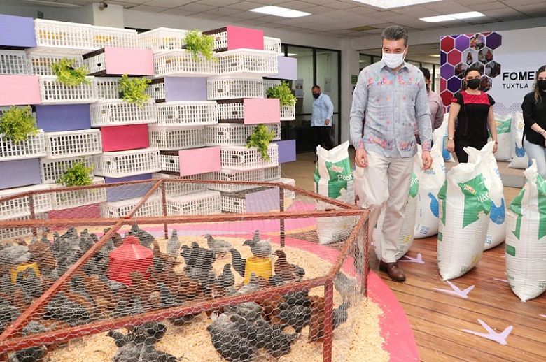 Por su parte, la directora del DIF Chiapas, Deliamaría González Flandez, explicó que en el programa de Fomento Familiar a la Producción de Traspatio se invierten 30 millones de pesos. Se entregará a cada madre de familia beneficiada 20 gallinas y dos gallos, 120 kilos de alimento, multivitamínico, así como un paquete para el cultivo de hortalizas, todo esto a fin de impulsar el autoconsumo.
