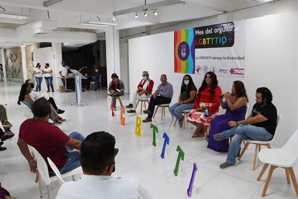 Tuxtla Gutiérrez, Chiapas. 25 de junio de 2021.- Por primera vez en su historia, la Universidad de Ciencias y Artes de Chiapas (UNICACH) se unió las celebraciones del Mes del Orgullo LGBTTTIQ+, con una jornada de tres días de actividades académicas orientadas a la inclusión y respeto a la diversidad sexual.