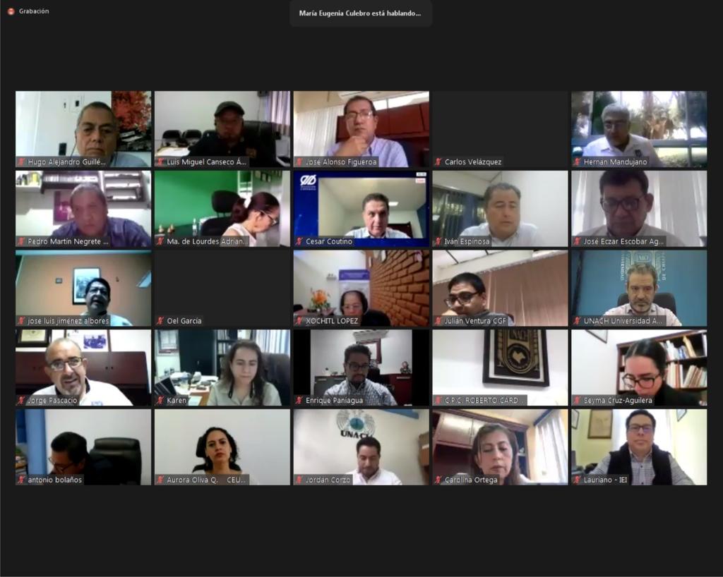 Tuxtla Gutiérrez, Chiapas; Junio 23 de 2021.- El rector de la Universidad Autónoma de Chiapas, Carlos F. Natarén Nandayapa, encabezó los trabajos de la Segunda Reunión del Colegio de Directores de la institución, que se desarrolló en la modalidad virtual, de acuerdo a las recomendaciones de la sana distancia dispuestas por las autoridades sanitarias.