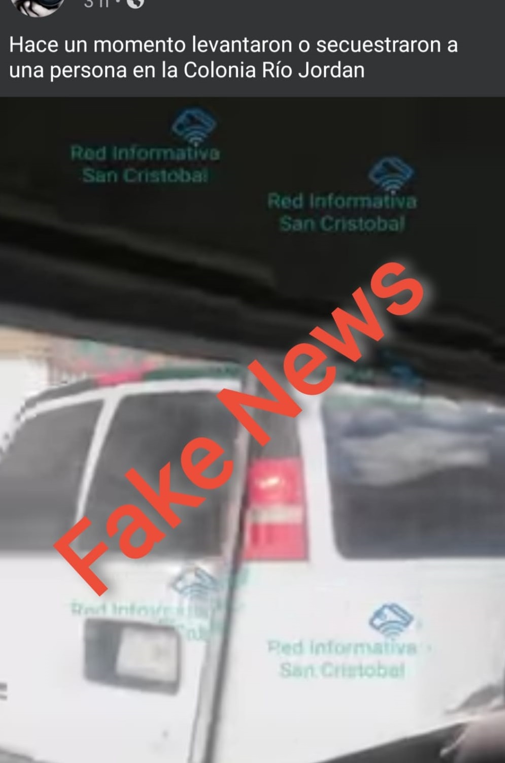Al tener conocimiento de dicha publicación, la policía municipal, a través de la Unidad de Investigación, analizó el video cuya duración es de siete segundos, en el cual se aprecia brevemente el abrir y cerrar de puertas de un vehículo tipo van, de color blanco, que se encontraba estacionado y que en seguida emprendió su marcha, sin que se pudiera determinar la ubicación del mismo.