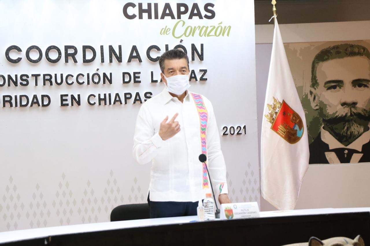 Tuxtla Gutiérrez, Chiapas; 16 de agosto de 2021.- En el marco de la Mesa de Seguridad, el gobernador Rutilio Escandón Cadenas informó que durante el fin de semana arribaron a Chiapas 151 mil 200 vacunas anti COVID-19, que ayudarán a continuar avanzando en la protección de la salud y vida de las chiapanecas y los chiapanecos, pues se tienen las suficientes dosis para que este proceso siga con éxito.