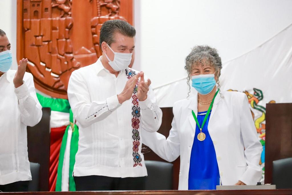 Tuxtla Gutiérrez, Chiapas. 11 de octubre de 2021.- Silvia Guadalupe Ramos Hernández, quien recibió la Medalla “Rosario Castellanos”, máxima distinción que otorga el Congreso del Estado de Chiapas, es una destacada científica y académica de la Universidad de Ciencias y Artes de Chiapas (UNICACH), reconocida como tal por la comunidad universitaria.