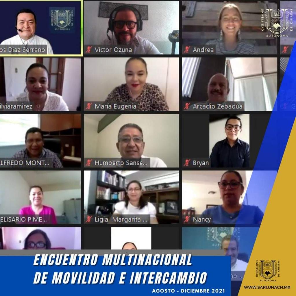 Tuxtla Gutiérrez, Chiapas; agosto 13 de 2021.- La Universidad Autónoma de Chiapas (UNACH), a través de la Coordinación General de Relaciones Interinstitucionales, llevó a cabo el Encuentro Multinacional de Movilidad e Intercambio Académico agosto-diciembre 2021.