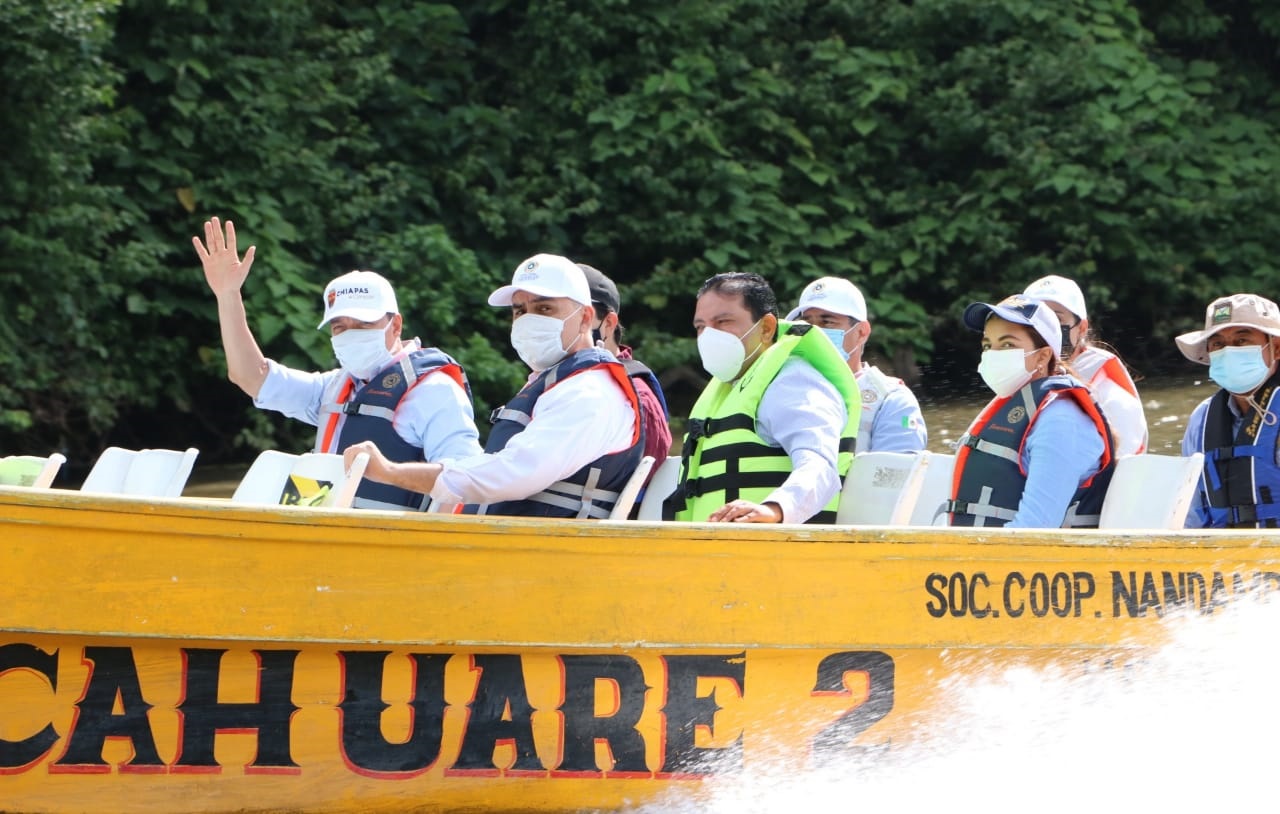 En ese sentido, reconoció la labor seria y responsable que desempeñan las autoridades, sociedad de lancheros y organizaciones sociales al cuidar este emblema natural, ya que, de enero del presente año a la fecha, se acabó el tapón que se formaba en esta zona del Río Grijalva y pese a la actual temporada de lluvias las aguas se conservan transparentes y sin desechos, motivando la llegada de visitantes y de mayores inversiones, lo que significa una importante generación de empleo y fortalecimiento a la economía en la entidad.
