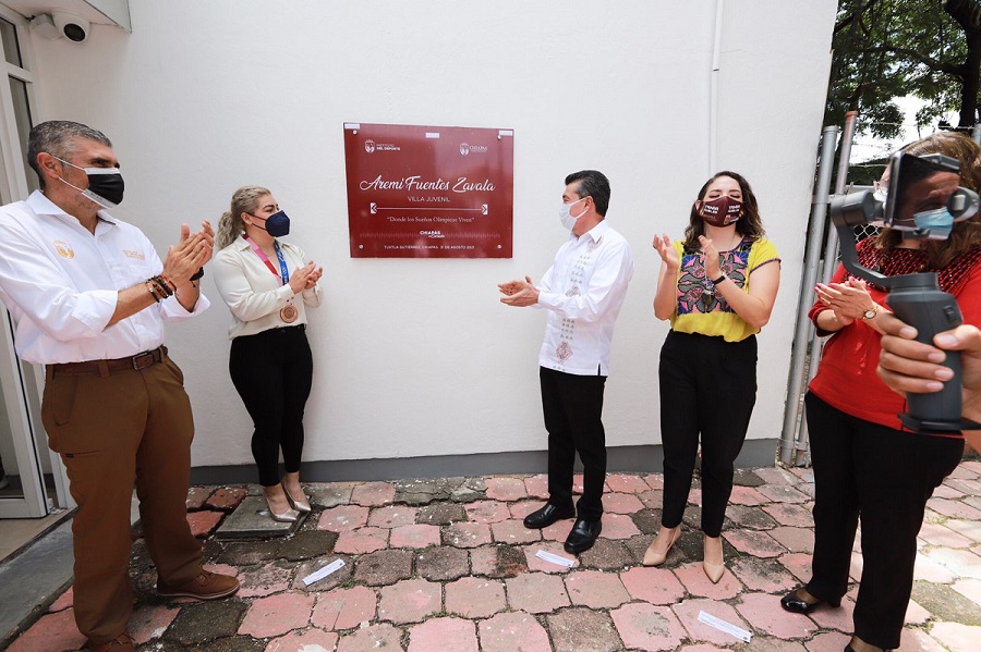 Por su parte, la medallista de bronce en los Juegos Olímpicos de Tokio agradeció a las autoridades por poner su nombre a la Villa Juvenil, e hizo un llamado respetuoso a que se siga transformando el deporte y apoyando al talento chiapaneco, a fin de evitar que emigren a otros estados en busca de desarrollo y oportunidades.