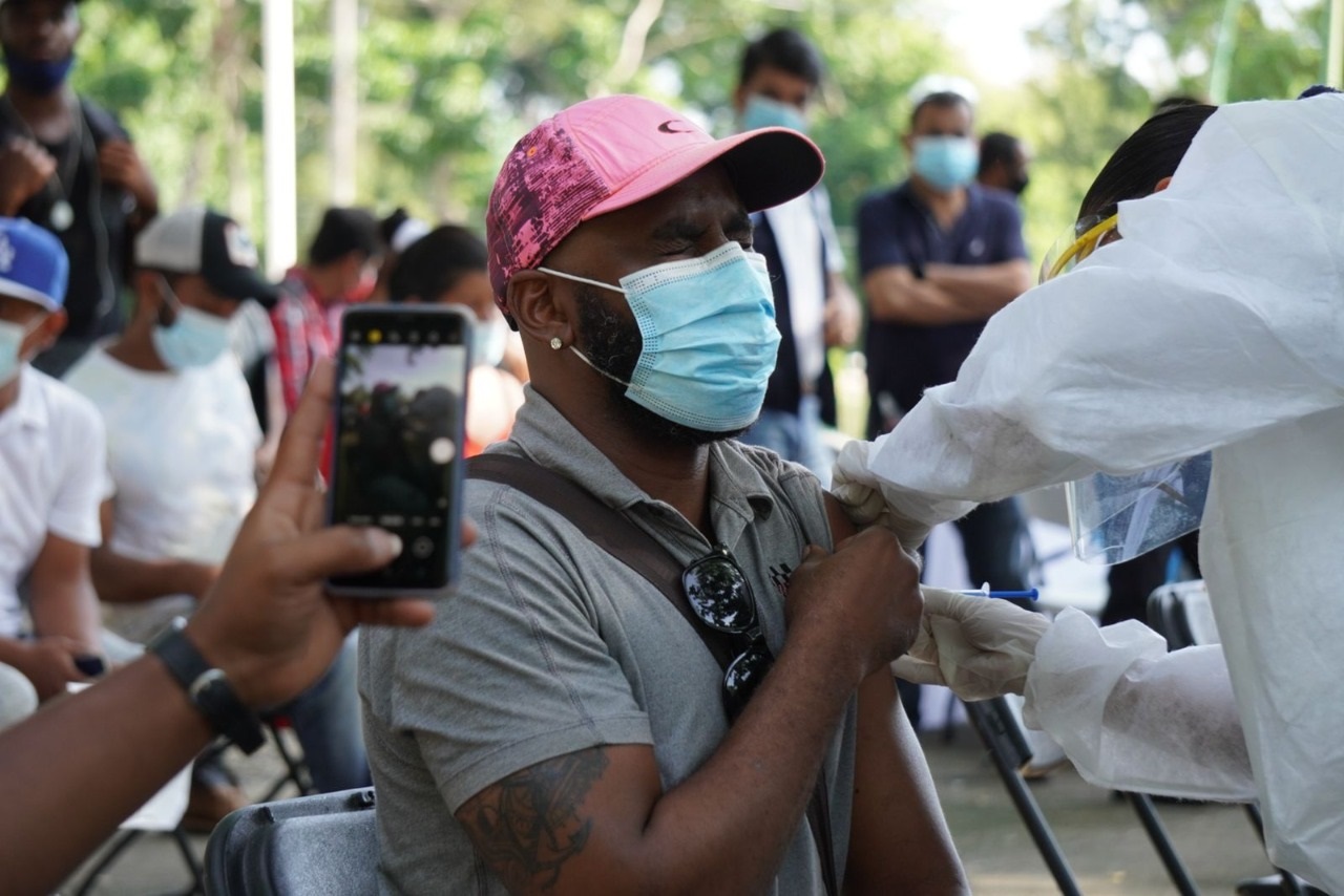 “Hoy empezamos en el Parque Ecológico y la respuesta ha sido muy buena. Tenemos personas de Haití, de Honduras, de El Salvador; la vacuna es universal y estamos recibiendo a toda persona mayor de 18 años”.
