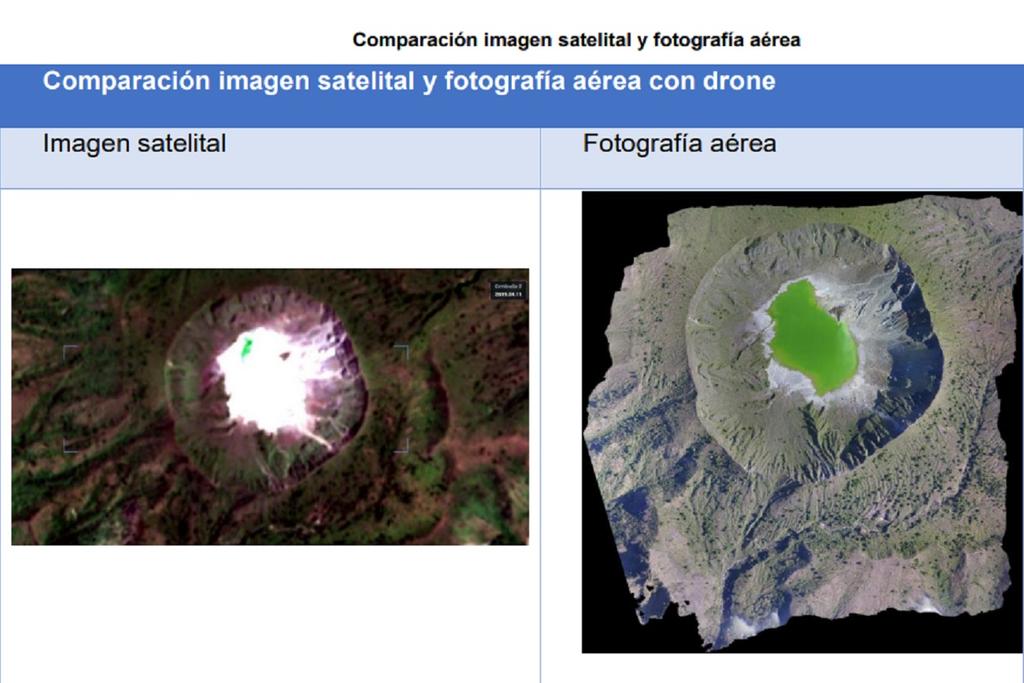 La alta resolución de los nuevos insumos beneficiará también a los estudios de deslizamiento de laderas para “identificar aquellas áreas que pongan en riesgo a los turistas y pobladores locales, quienes descienden al lago del volcán, y prevenir avenidas por derrumbes en la cañada del volcán, ya que en muchas partes de esta se encuentran paredes totalmente verticales, que con las lluvias suelen derrumbarse”.