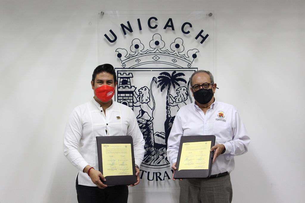 Tuxtla Gutiérrez, Chiapas. 21 de septiembre de 2021.- El convenio de colaboración signado entre la Cámara Mexicana de la Industria de la Construcción (CMIC) y la Universidad de Ciencias y Artes de Chiapas (UNICACH) fortalecerá la formación de recursos humanos con capacidades para incursionar en el sector empresarial.