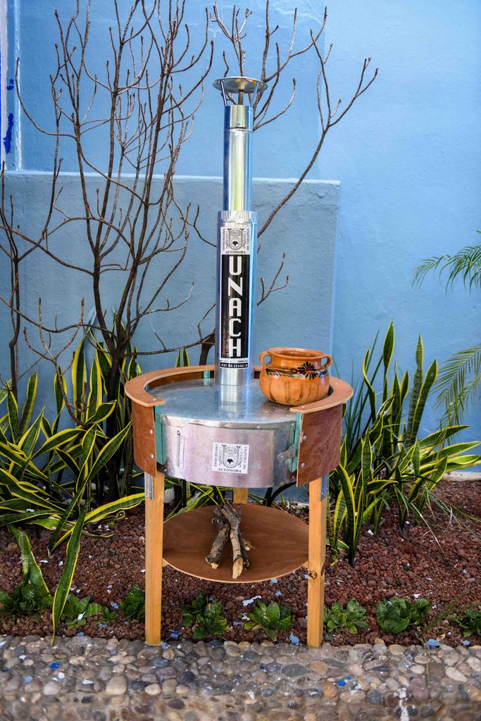 Este fogón ecológico, desarrollado por Martín Osiel Constantino Díaz, integrante del CESU, se utiliza con leña y es viable para zonas rurales, además de que su diseño permite un mejor desalojo del humo.