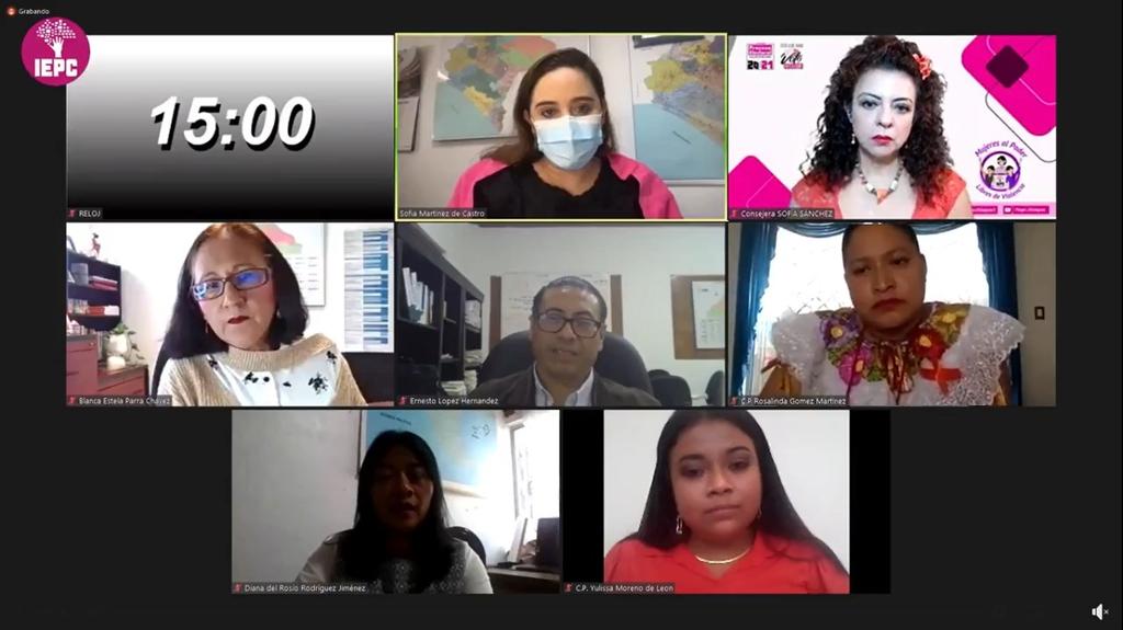 La consejera electoral Sofía Margarita Sánchez Domínguez, presidenta de la Comisión Provisional de Igualdad de Género y No Discriminación y del Observatorio de Participación y Empoderamiento Político de las Mujeres en Chiapas, señaló que este conversatorio es para visibilizar los obstáculos que las mujeres han enfrentado en los primeros días del ejercicio de sus funciones, y que sepan que podemos orientarlas y asesorarlas para saber qué hacer frente a una posible conducta de violencia política en razón de género.