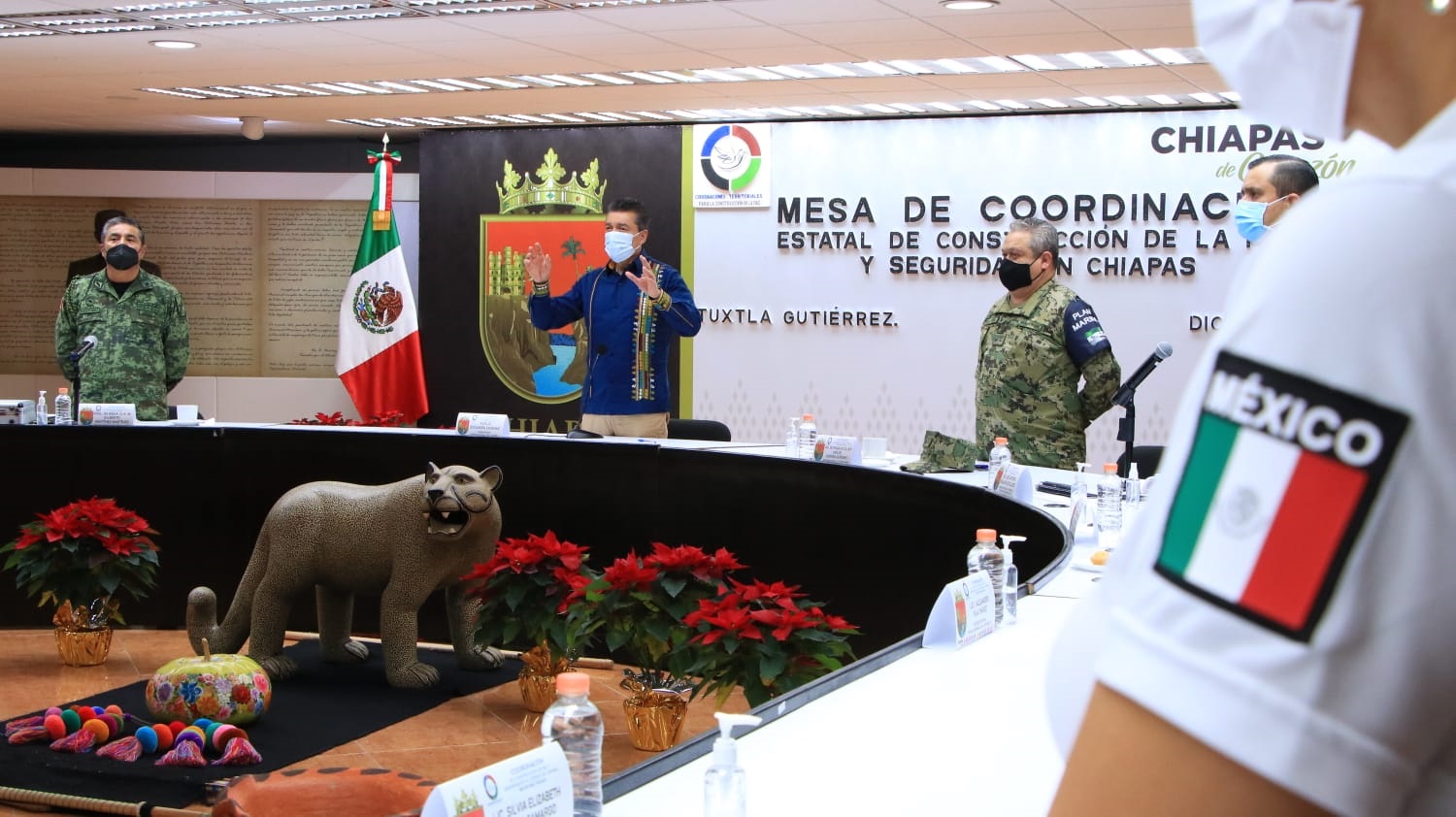 Finalmente, el gobernador destacó el trabajo profesional que realizan las Fuerzas Armadas a favor del respeto a las instituciones y la seguridad de la población, y reconoció a la Fiscalía General del Estado de Chiapas por la localización y detención del objetivo prioritario 69 en materia de secuestro.