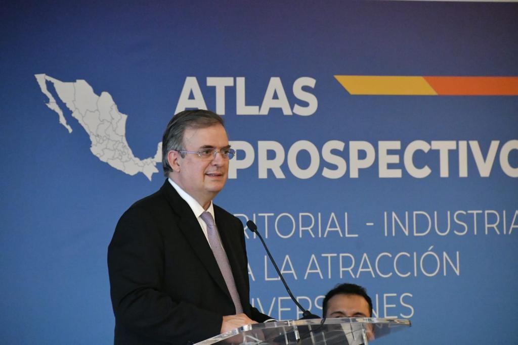 El secretario de Relaciones Exteriores, Marcelo Ebrard Causabon, encabezó hoy la presentación del Atlas prospectivo territorial- industrial para la atracción de inversiones: una oportunidad para la recuperación socioeconómica en México, que tiene como objetivo impulsar una estrategia que permita atraer inversiones hacia sectores de alto valor agregado y regiones específicas del país, potenciando así el desarrollo económico, social, ambiental y urbano.