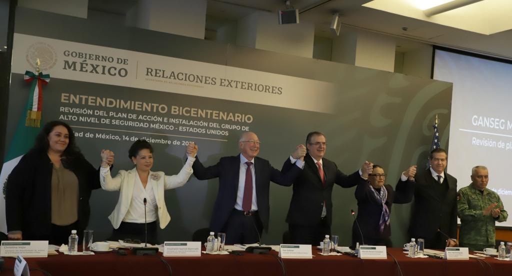 Los gobiernos de México y Estados Unidos se reunieron en la Cancillería para dar inicio a las operaciones que derivan del Entendimiento Bicentenario a través de la instalación del GANSEG y sus subgrupos de trabajo para materializar la nueva visión conjunta de ambos países en seguridad.